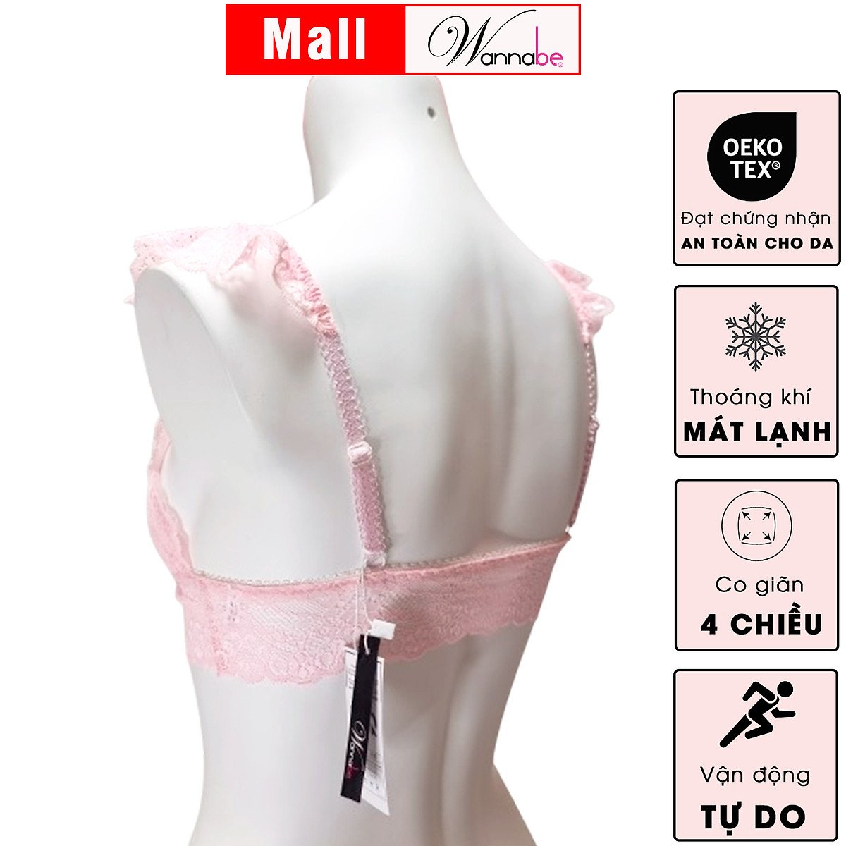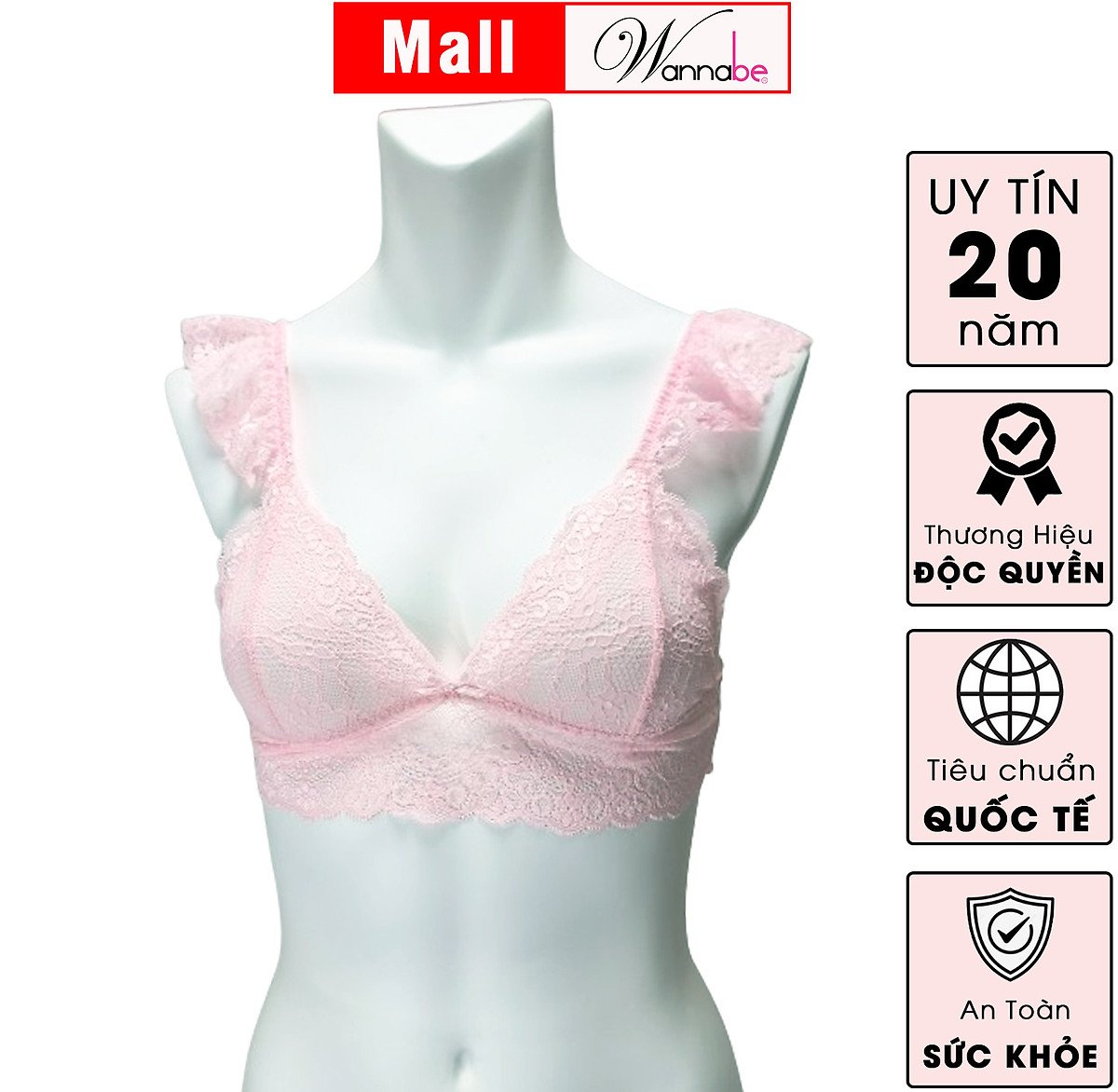 Sự thoải mái này không hề đánh đổi bằng vẻ đẹp. Ngược lại, WANNABE ANR08 còn nâng tầm phong cách với chất liệu ren hoa mềm mại, nhẹ nhàng, ôm sát bầu ngực một cách tinh tế. Điểm nhấn "dây vai cánh tiên" nhún bèo không chỉ tạo nên vẻ ngoài điệu đà, nữ tính mà còn gợi lên hình ảnh của sự thanh thoát, bay bổng. Đây là sự lựa chọn lý tưởng cho những cô gái yêu thích sự gợi cảm trẻ trung, hiện đại, muốn thể hiện cá tính riêng mà vẫn giữ được sự duyên dáng, tinh tế.