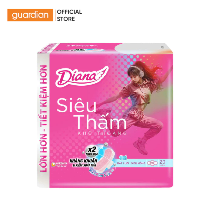 Băng vệ sinh Diana siêu thấm siêu mỏng cánh là sản phẩm chăm sóc phụ nữ được tin dùng nhờ khả năng thấm hút nhanh, thiết kế mỏng nhẹ nhưng bảo vệ hiệu quả. Với công nghệ hiện đại, sản phẩm giúp bạn luôn khô thoáng, tự tin vận động trong những ngày “đèn đỏ”.