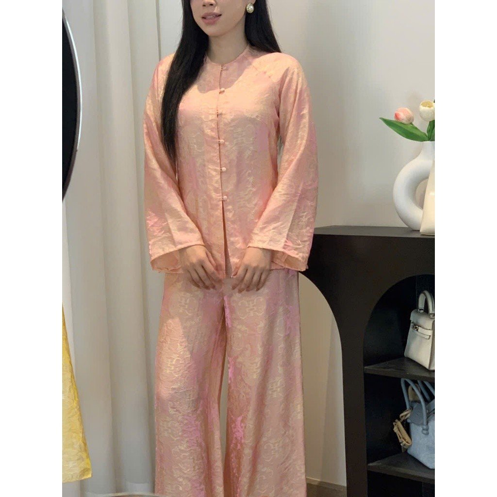 Sự kết hợp giữa nét đẹp truyền thống và hơi thở hiện đại đã tạo nên Bộ bà ba đi chùa nữ HINSTORE bộ áo ngắn pháp phục cúc bọc cổ tròn lụa tằm ánh kim họa tiết thọ dơi 425. Đây không chỉ là trang phục đi lễ chùa mà còn là biểu tượng của sự thanh tao, lòng thành kính và gu thẩm mỹ tinh tế của người phụ nữ Việt.