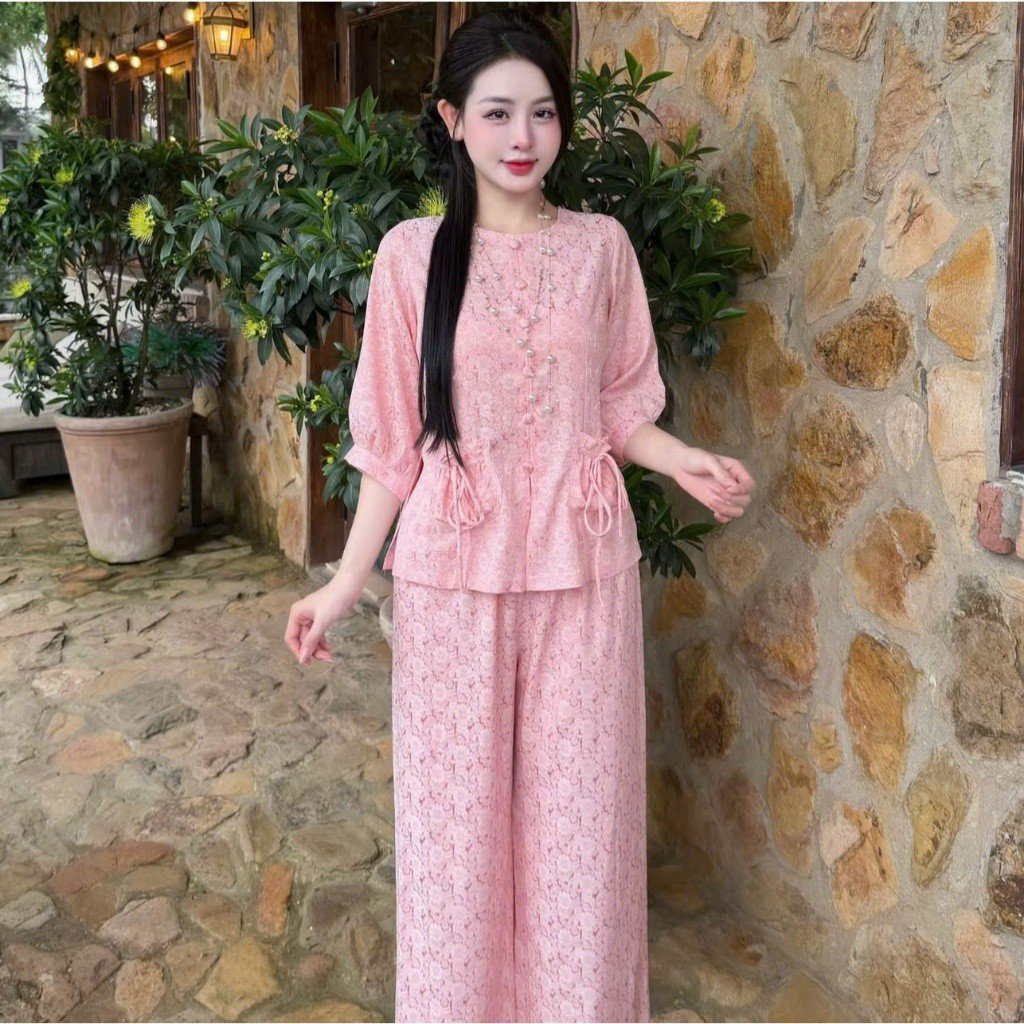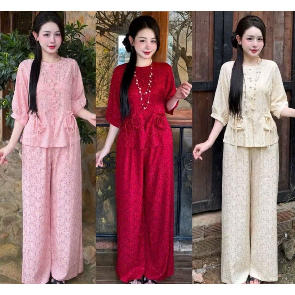 Sét Lam Hoa Cúc được thiết kế dành riêng cho những dịp cần sự trang nghiêm như đi lễ, đi chùa nhưng vẫn giữ được nét trẻ trung, hiện đại. Điểm nhấn lớn nhất chính là họa tiết hoa cúc chìm trên nền vải gấm, kết hợp cùng chi tiết cúc bọc tỉ mỉ, tạo nên một tổng thể vừa tinh tế vừa sang trọng theo phong cách tiểu thư nhẹ nhàng.