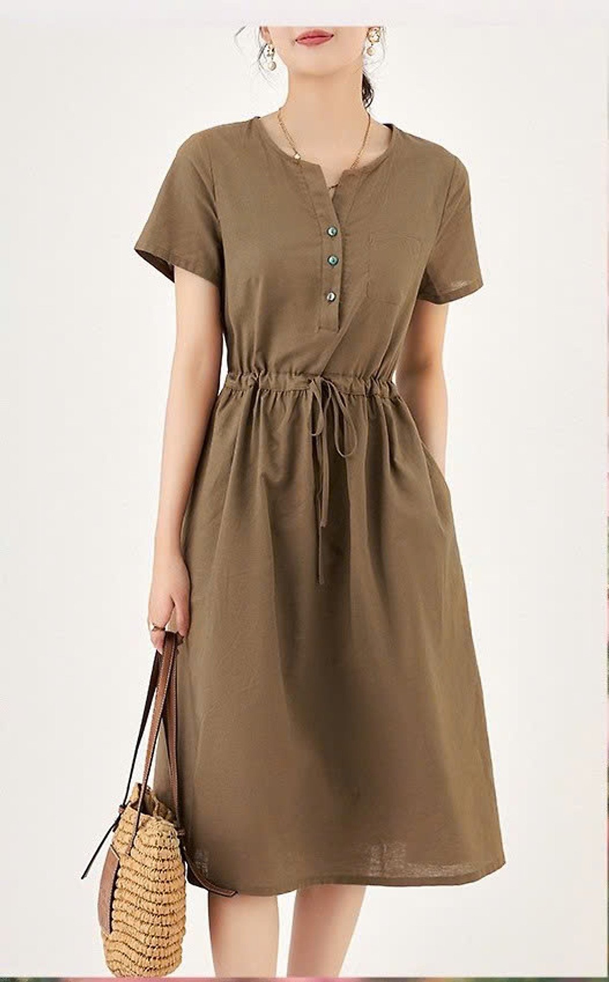 Đặc điểm thiết kế của Đầm cao cấp Đũi Việt cổ V dây rút DA218