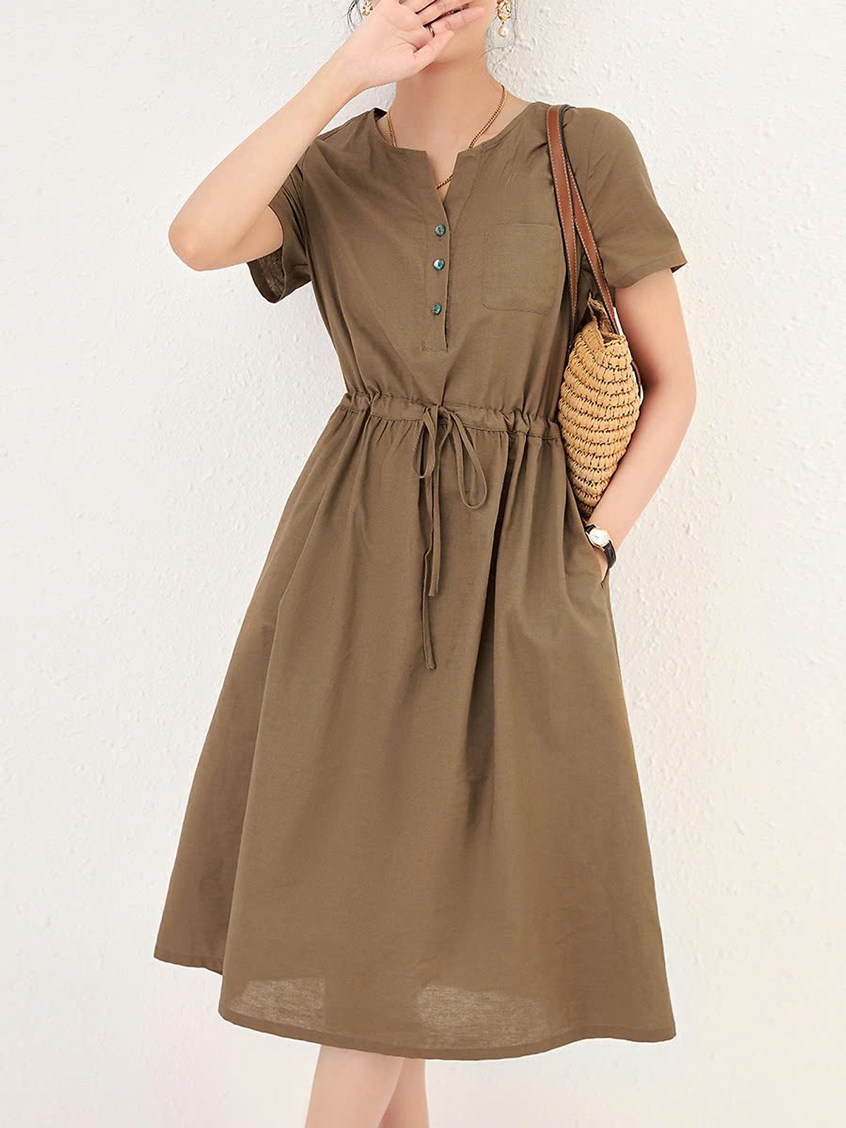 Bí quyết phối đồ với đầm Đũi Việt cổ V cho phong cách trẻ trung