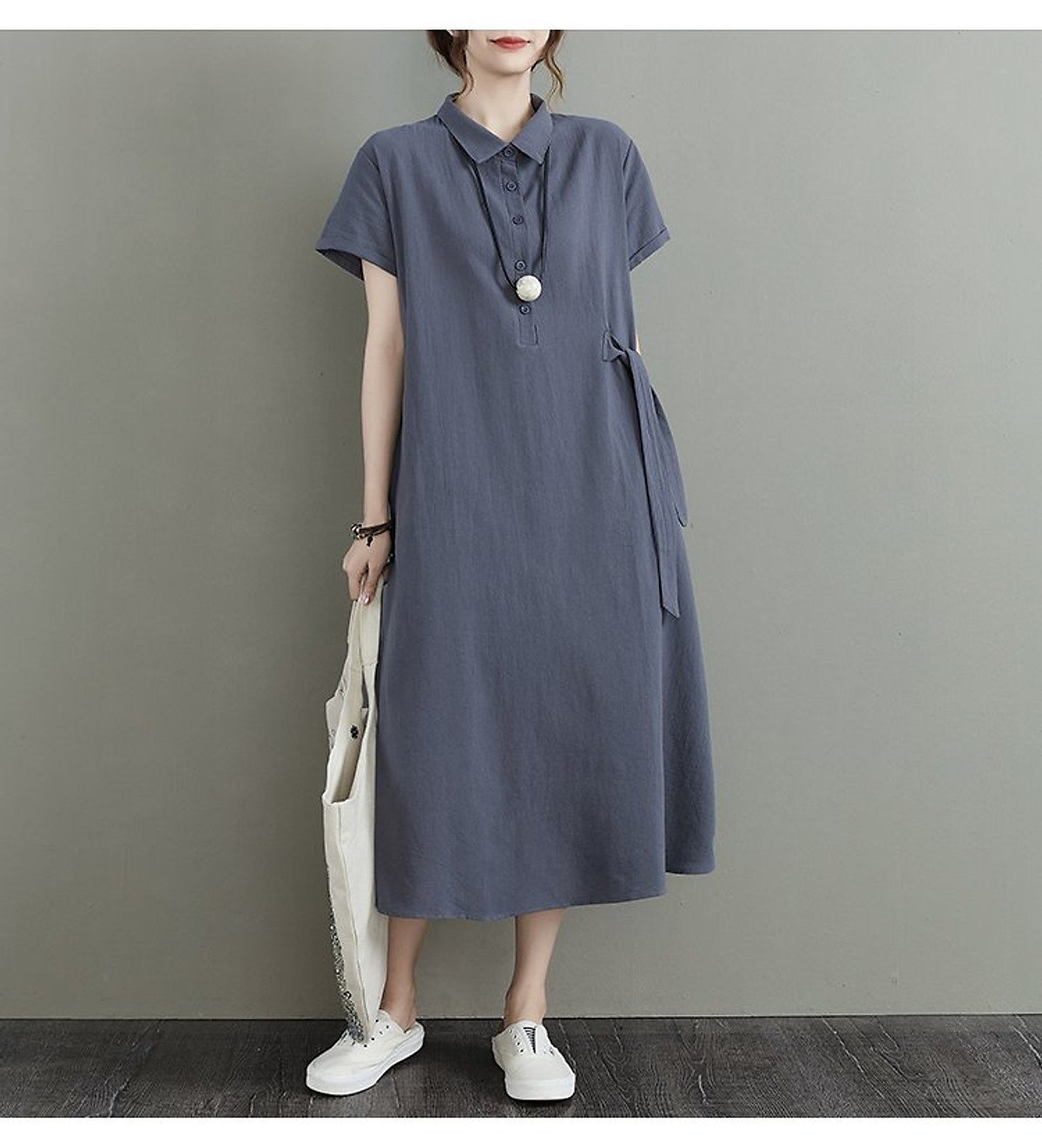 - Kiểu dáng chữ A thanh thoát: Thiết kế dáng suông nhẹ nhàng xòe dần về phía gấu áo giúp che đi khuyết điểm vòng hai và vòng ba một cách khéo léo. Độ dài đầm được tính toán tỉ mỉ để tạo cảm giác đôi chân dài hơn, phù hợp với nhiều vóc dáng khác nhau.