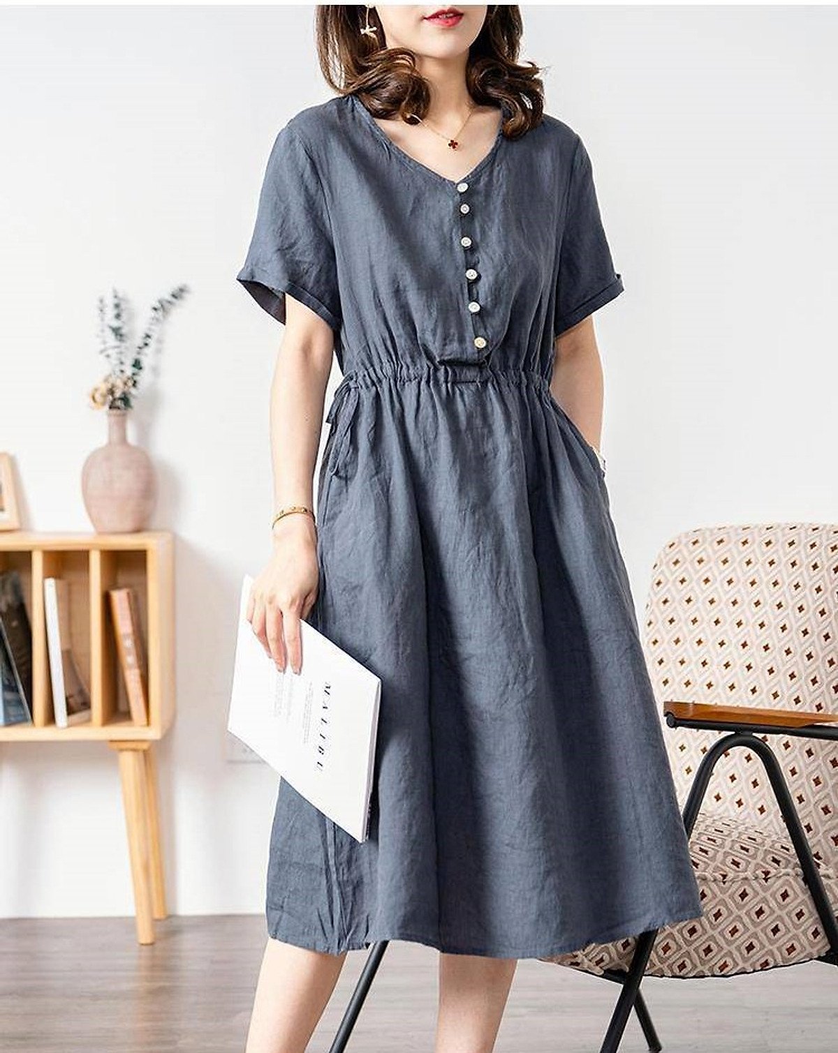 Chất liệu linen (vải lanh) từ lâu đã được mệnh danh là "linh hồn của mùa hè". Khi kết hợp với form dáng suông và thiết kế cổ V tinh tế, sản phẩm Da173 trở thành lựa chọn hàng đầu cho phái đẹp.
