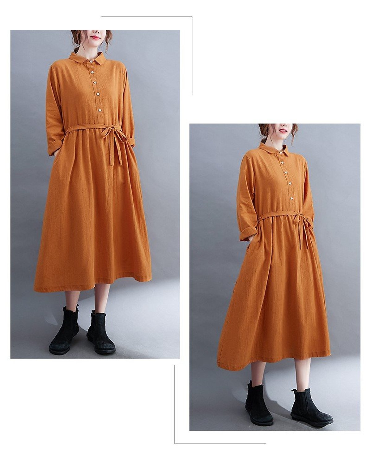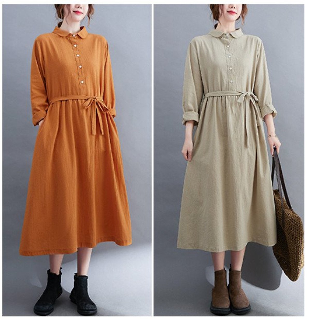 Đầm Linen Suông Nữ Cổ Sơ Mi Dài Tay NH185: Lựa Chọn Hoàn Hảo Cho Thời Trang Thu Đông