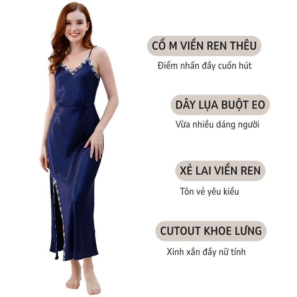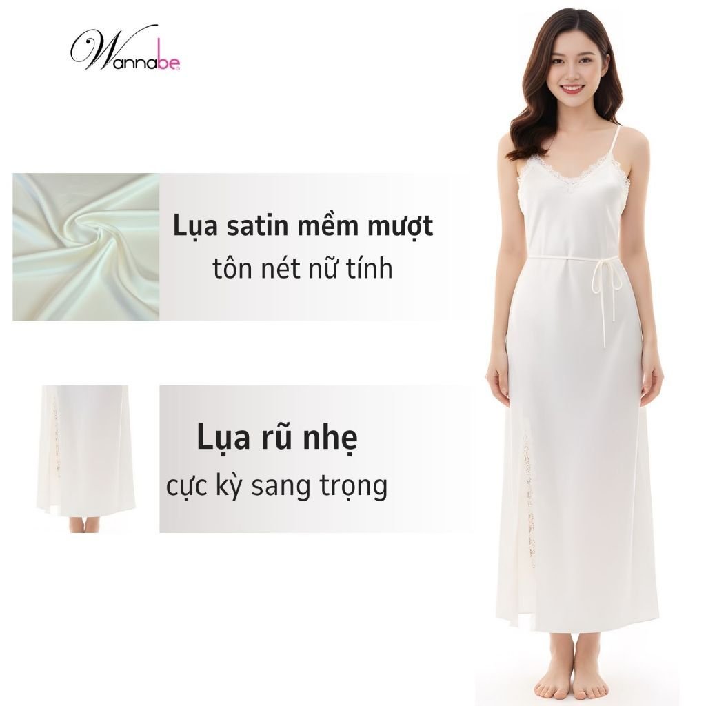 Đầm ngủ dáng dài WANNABE váy ngủ nữ lụa mịn mềm mát sang trọng tôn vinh đôi chân dài bất tận DNS58