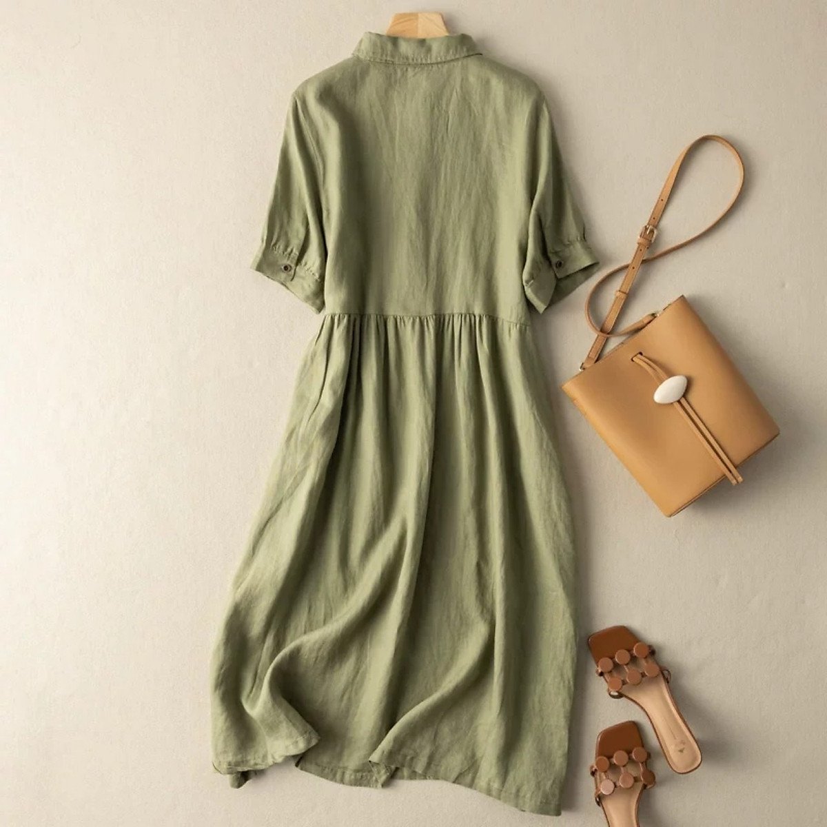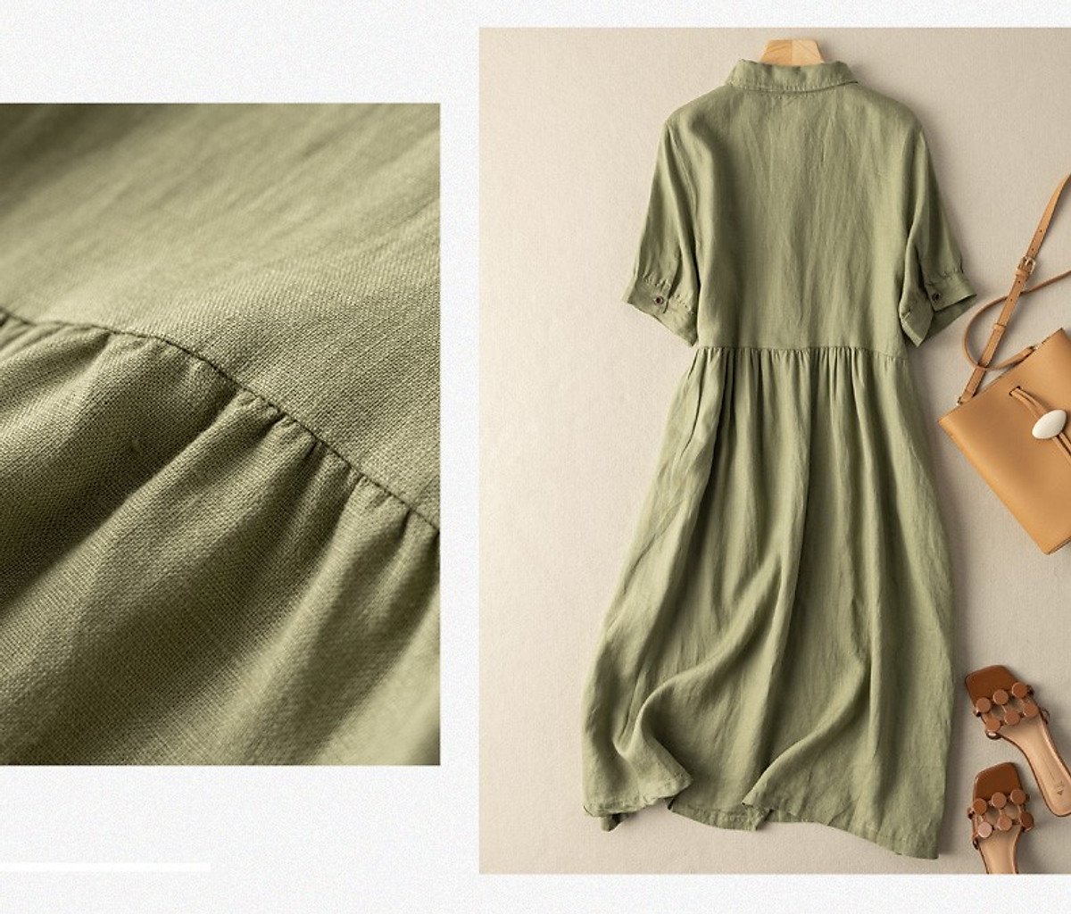 Đầm Nữ Linen Cổ Đức Nhún Eo DA162: Sự Kết Hợp Hoàn Hảo Giữa Thanh Lịch Và Phóng Khoáng