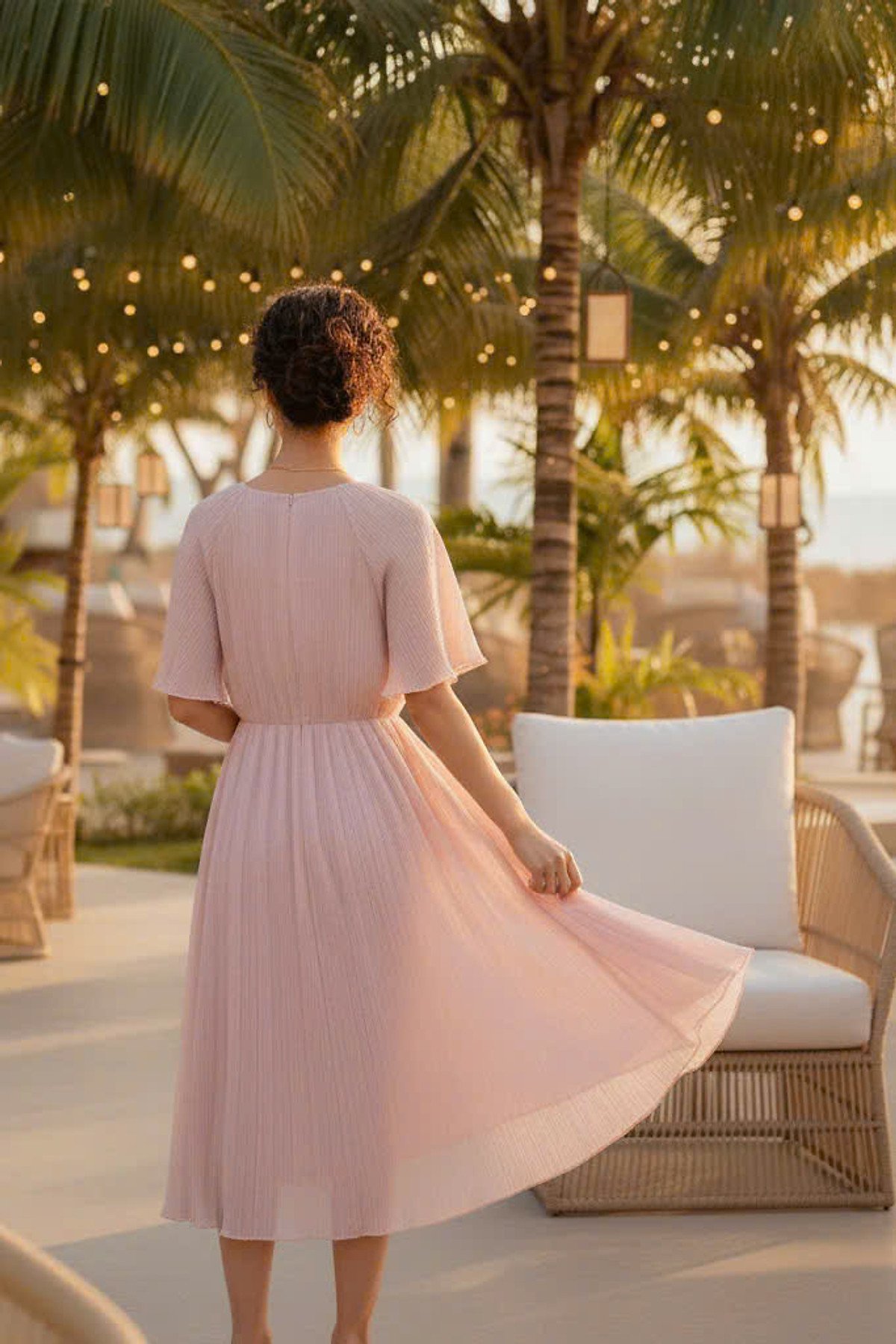 Đầm Xoè Dập Ly Hồng Pastel Hity DRE194 – Nét Dịu Dàng Thanh Lịch Cho Nàng Hiện Đại