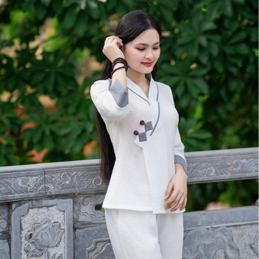 - Tiện lợi trong tu tập: Với thiết kế rộng rãi, co giãn nhẹ và thấm hút mồ hôi, bộ đồ hỗ trợ tối đa cho các hoạt động như ngồi thiền, nghe kinh hay làm công quả.