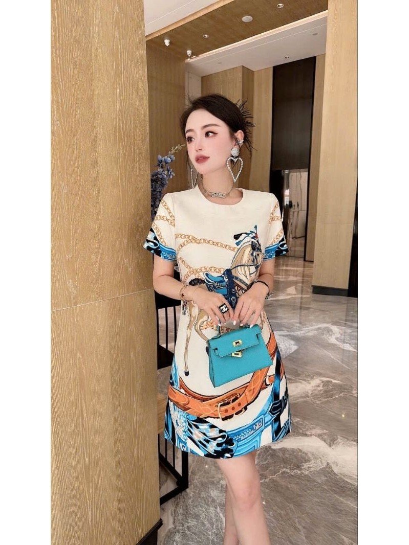 Đặc điểm thiết kế Đầm suông lụa cao cấp họa tiết ngựa YT.D45