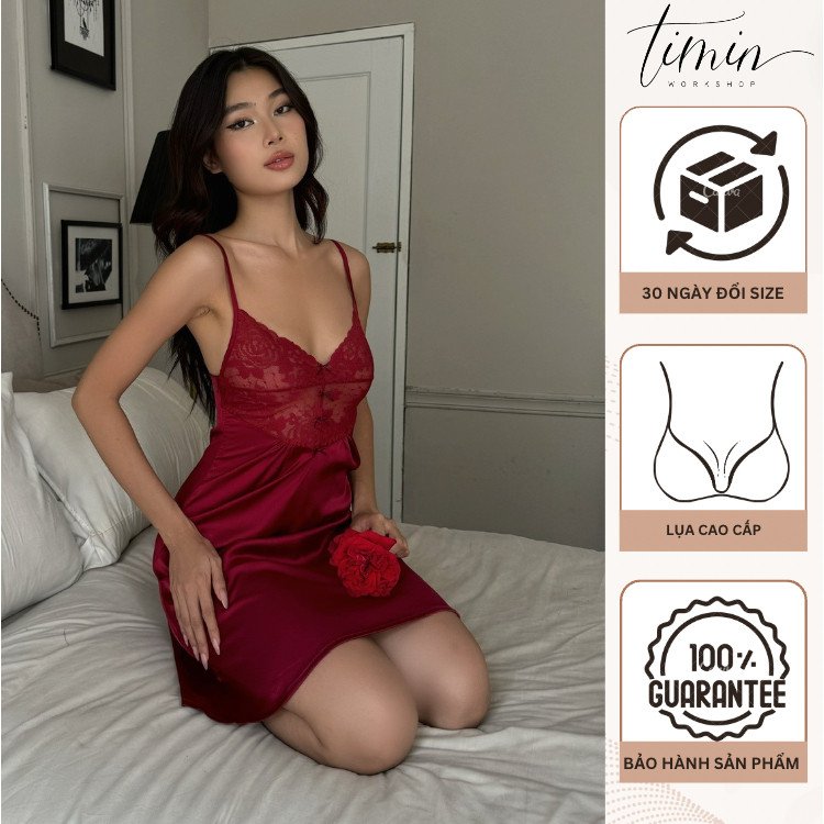 Lily Váy Ngủ Lụa Cao Cấp Mix Ren Thiết Kế TIMIN WORKSHOP