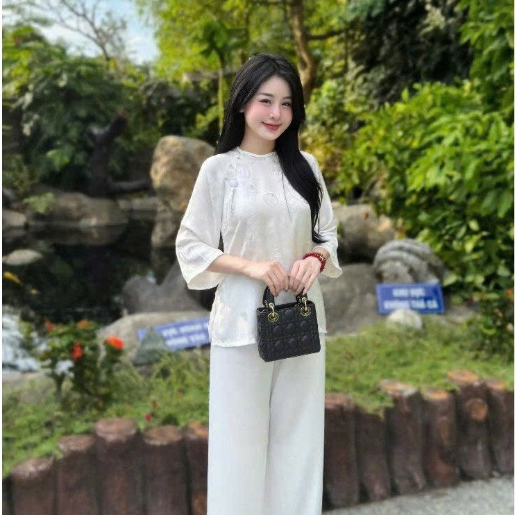 - Độ rủ tự nhiên: Chất liệu lụa gấm có độ nặng vừa phải, giúp form áo đứng dáng nhưng vẫn giữ được sự mềm mại, uyển chuyển trong từng bước đi.