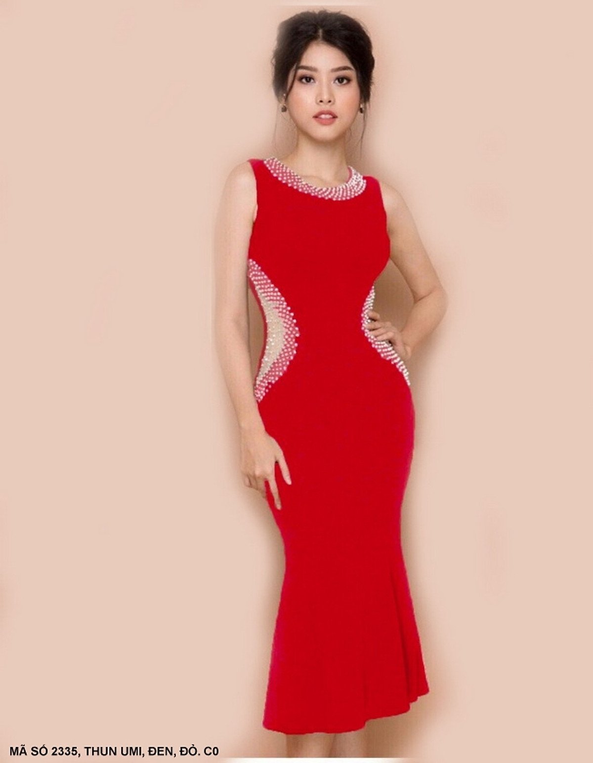 - Kiểu dáng: Đầm ôm nhẹ, lai loe (đuôi cá cách điệu).