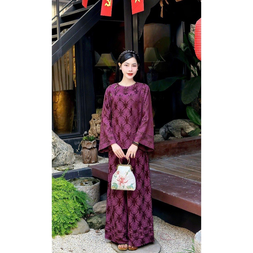 Điểm nhấn lớn nhất nằm ở phần thiết kế 3 tầng tinh tế, tạo độ bồng bềnh nhẹ nhàng, giúp che khuyết điểm cơ thể một cách khéo léo. Tay lỡ vừa đủ kín đáo để tôn trọng không gian tôn nghiêm của chùa chiền, vừa đủ thoáng mát để người mặc cảm thấy tự tin trong mọi hoạt động. Đây là mẫu set đồ nữ đi lễ chùa đang dẫn đầu xu hướng nhờ tính đa năng: bạn có thể diện đi lễ, dạo phố hay tham gia các buổi tiệc chay, họp mặt gia đình đều vô cùng phù hợp.