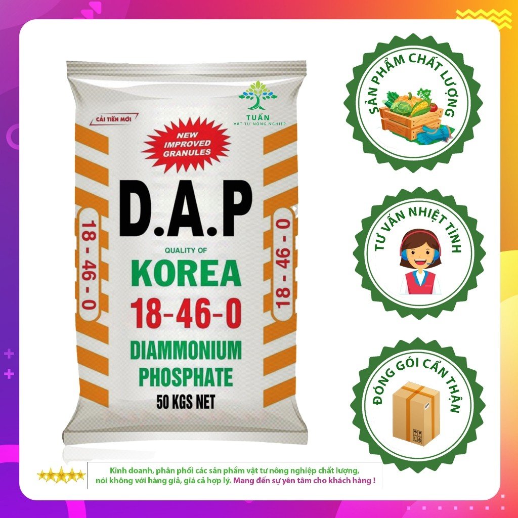 Phân bón DAP 18-46-0 là dòng phân bón vô cơ cao cấp, chuyên dùng bón lót và bón thúc cho nhiều loại cây trồng như rau màu, cây ăn trái, hoa kiểng, cây công nghiệp. Với hàm lượng Lân (P₂O₅) cao vượt trội, sản phẩm giúp kích thích ra rễ mạnh, phát triển bộ rễ khỏe, đâm chồi nhanh, tạo tiền đề cho cây sinh trưởng tốt và cho năng suất cao.