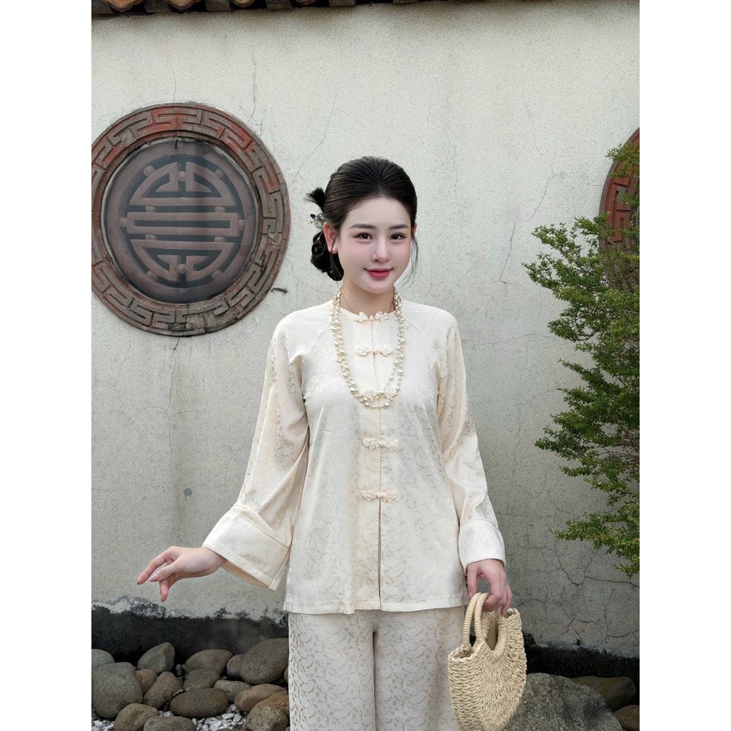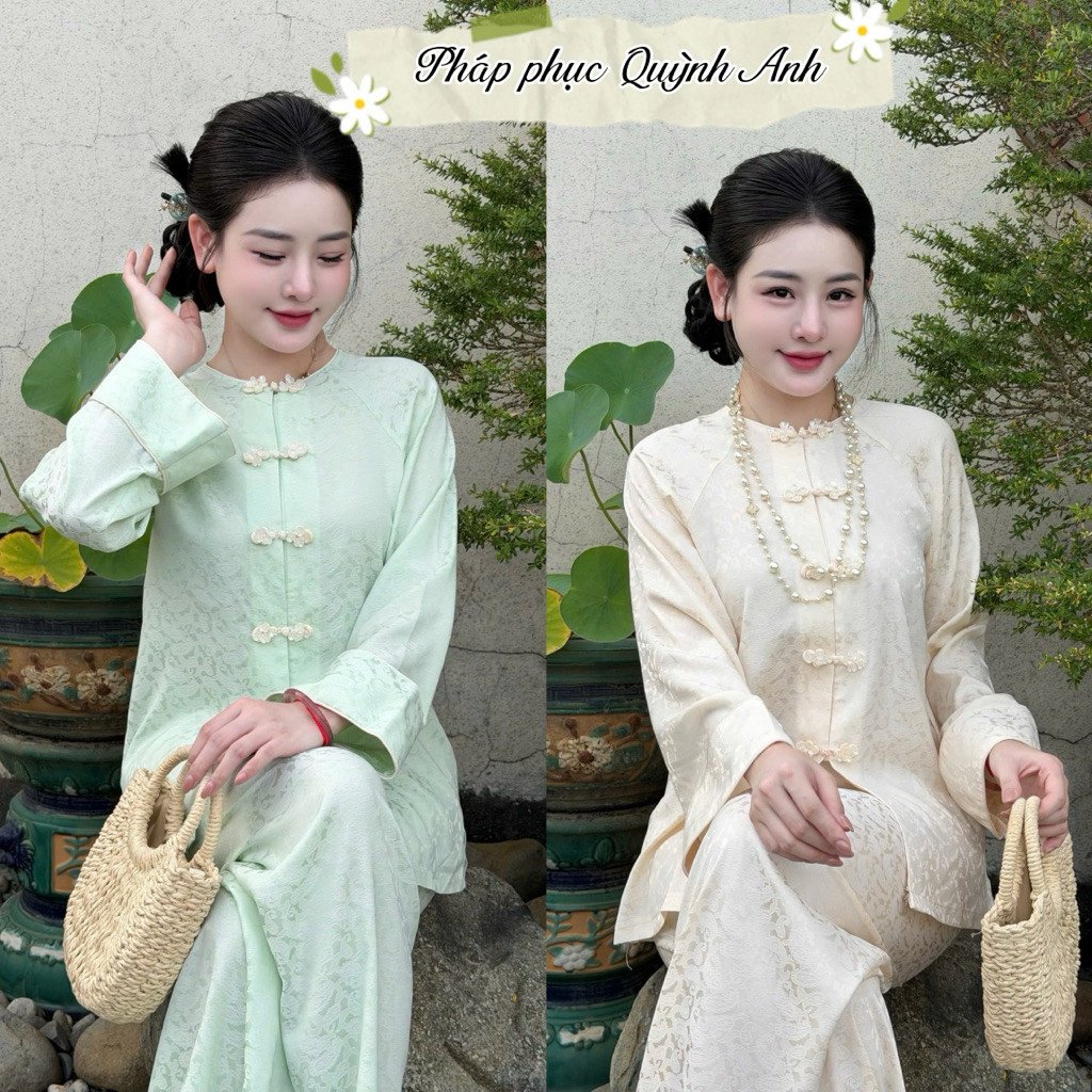 - Họa tiết cúc hoa siêu sang: Điểm nhấn đắt giá của bộ QA162 chính là hệ thống cúc hoa được chế tác tỉ mỉ. Những bông hoa nhỏ nhắn được đính kết khéo léo dọc theo tà áo hoặc phần cổ, tạo nên vẻ đẹp thanh thuần, nữ tính nhưng cũng không kém phần quyền quý.