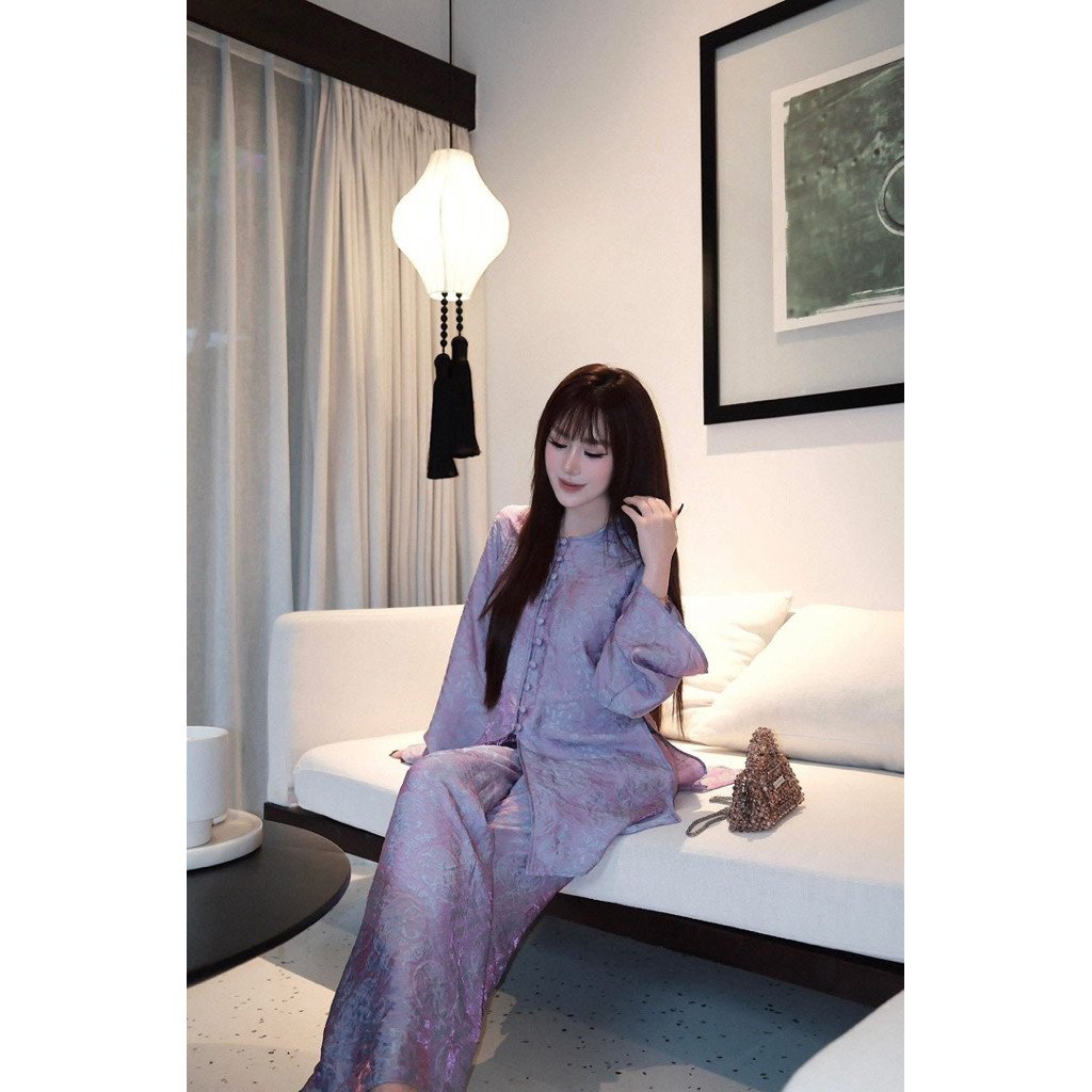 Phong cách hiện đại được thể hiện rõ qua cách phối màu và xử lý bề mặt vải. Độ bóng vừa phải của chất liệu ánh kim tạo nên chiều sâu cho trang phục, giúp người mặc dễ dàng kết hợp với các phụ kiện như túi xách mây tre đan, trang sức ngọc trai hoặc các loại hài vải thêu hoa. Sự giao thoa này giúp phái đẹp thể hiện được cá tính riêng: vừa yêu quý những giá trị cội nguồn, vừa nhạy bén với các trào lưu thời trang mới nhất. Đây là lý do khiến QA339 trở thành lựa chọn ưu tiên cho những phụ nữ hiện đại muốn tìm kiếm sự khác biệt trong phong cách thời trang pháp phục.