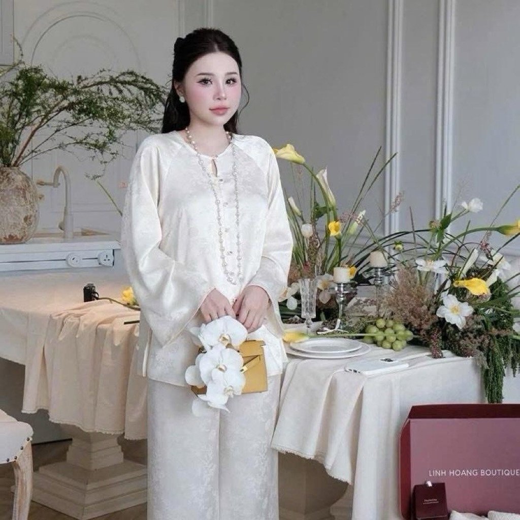 - Vẻ đẹp "Sang – Xinh": Họa tiết này giúp người mặc trông trẻ trung nhưng vẫn giữ được nét đài các, quý phái. Nó phá vỡ định kiến rằng pháp phục thường khô khan hay quá già dặn.