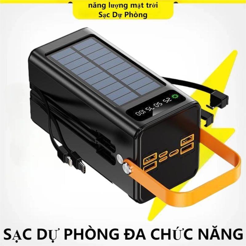 Năng lượng mặt trời- Sạc dự phòng1 50.000mAh :4 dây sạc nhanh [type-c được vào+ra] -Dung lượng: 150000mAh -Duong lượng thật : ~132.500mAh -Công nghệ: PD 3.0, QC3.0, MiTurbo, VOOC -Cổng Sạc : 1 Cổng Type-C, 4 Cổng USB -USB-C Input/Output: (PD3.0) 5V 2.4A / 9V 2A / 12V 2.0A -USB-A Output: (QC3.0) 5V 2.4A / 9V 2A / 12V 2.0A -Công suất nguồn ra: 120W -Trọng lượng : ~830gram kích cỡ :149X71X68mm – Sạc dự phòng 150.000mAh