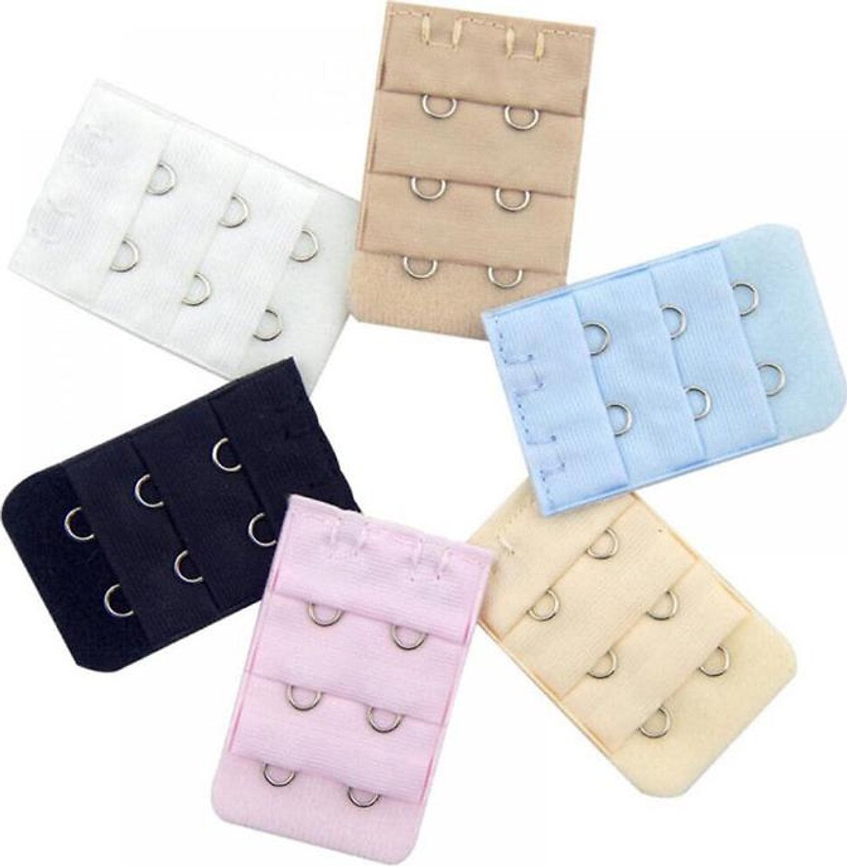 Set 5 miếng cài áo ngực phụ được thiết kế chuyên dụng cho các dòng áo ngực phổ biến nhất hiện nay – loại có 2 móc cài dọc. Đây là phụ kiện nhỏ gọn nhưng mang lại giá trị sử dụng cực lớn, giúp nới rộng chu vi vòng lưng áo thêm từ 3cm đến 5cm tùy theo nấc cài bạn chọn.