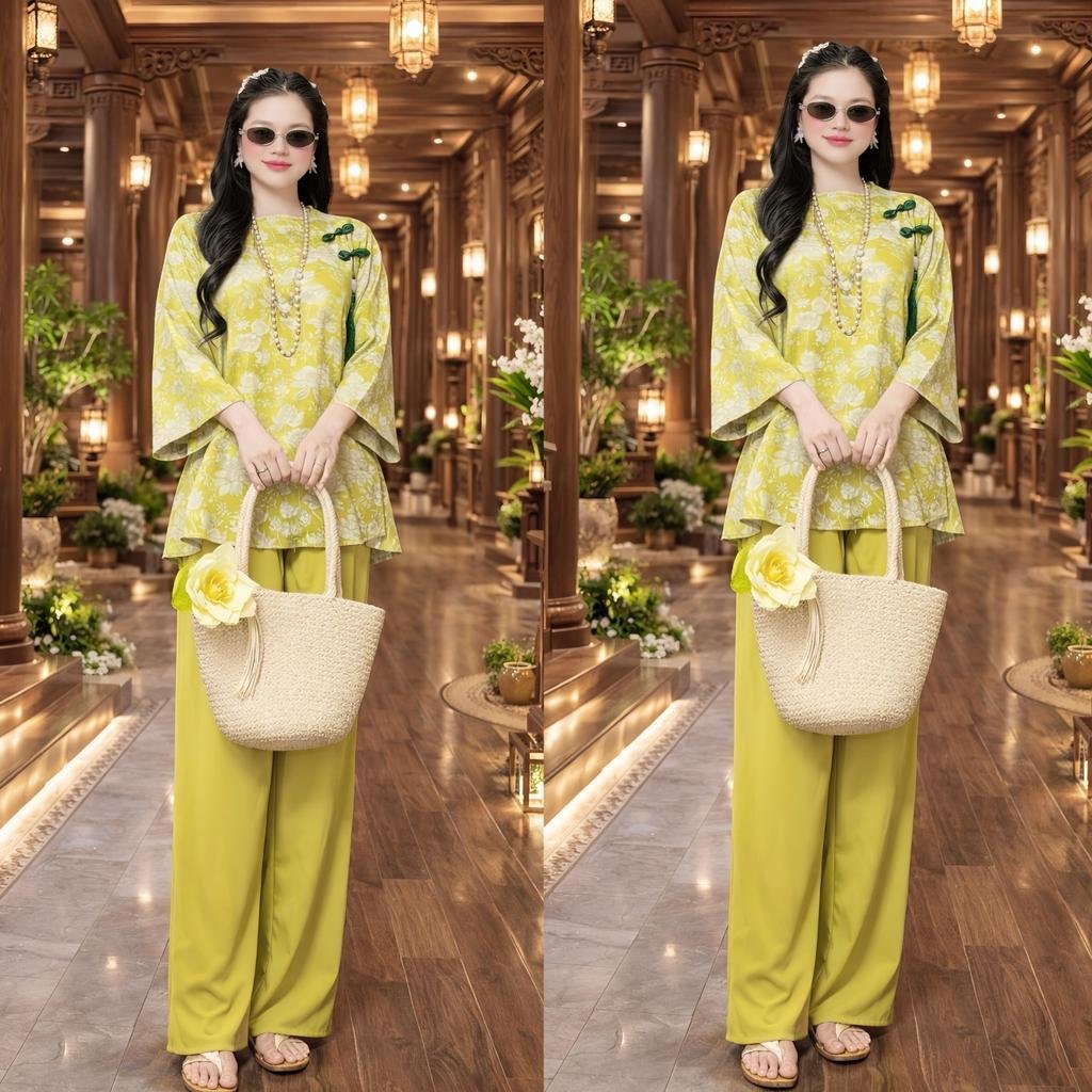 Việc kết hợp giữa áo bà ba cách tân và quần ống rộng không chỉ giúp che đi bắp chân to mà còn tạo hiệu ứng kéo dài đôi chân, giúp người mặc trông cao ráo và gọn gàng hơn đáng kể. Đây chính là giải pháp thời trang hoàn hảo cho phụ nữ từ 50kg đến 100kg trong năm nay.