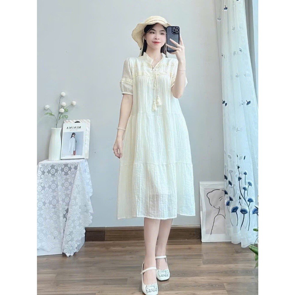 - Kiểu dáng suông dài: Form dáng suông giúp giải phóng vòng bụng, tạo không gian thoải mái cho sự phát triển của thai nhi. Chiều dài váy được tính toán kỹ lưỡng để mẹ bầu trông cao ráo và thanh thoát hơn.