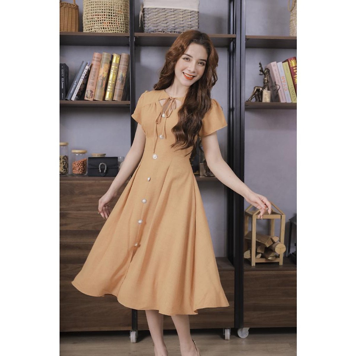 - Tên sản phẩm: Váy Nữ Vải Xước Màu Be Cao Cấp 23V043 Pi Style