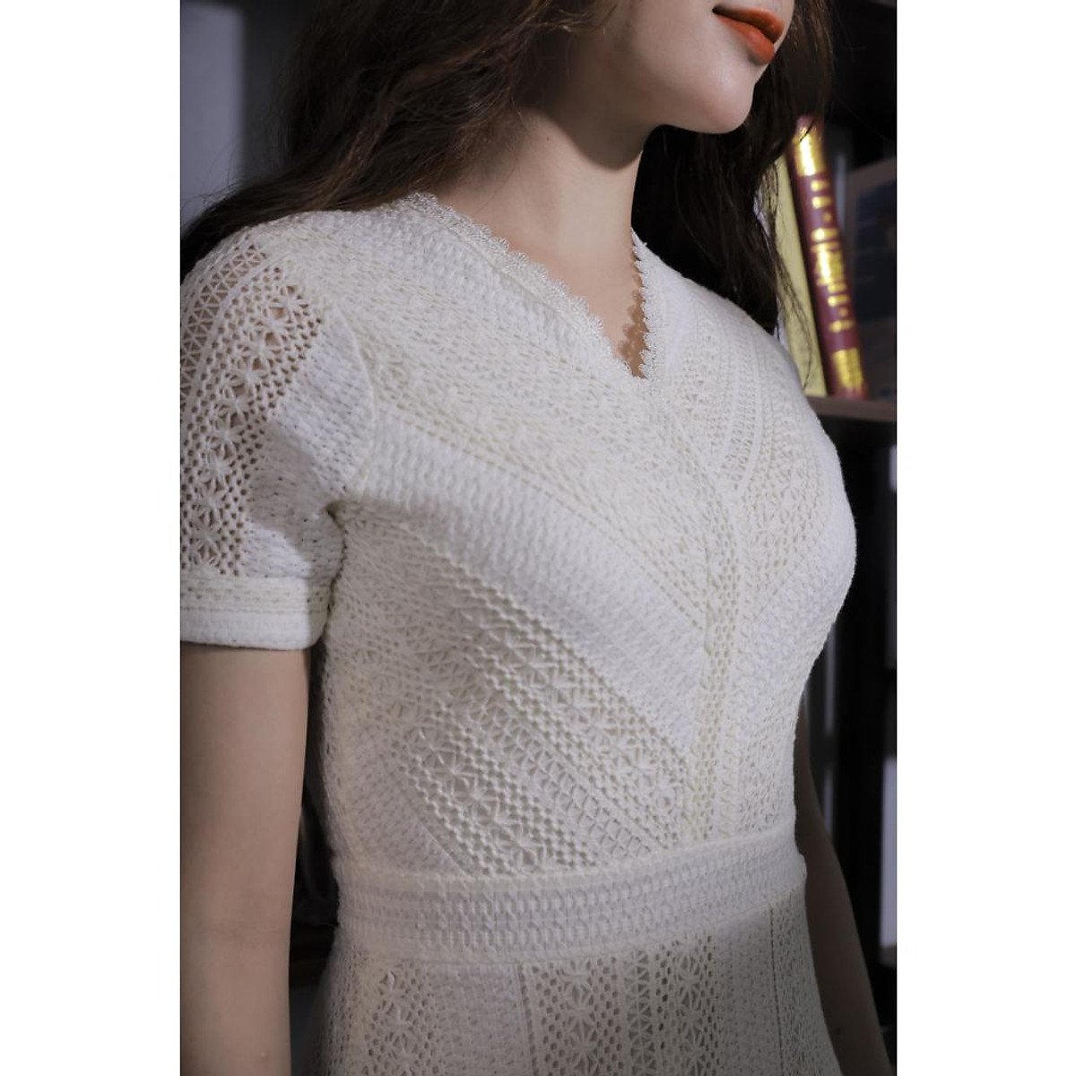 - Tên sản phẩm: Váy Ren Cao Cấp Màu Kem Thanh Lịch 23V019.